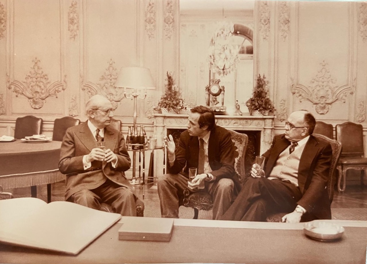 Vicente Girbau con Enrique Tierno Galván y André Labarrère, alcalde de Pau,